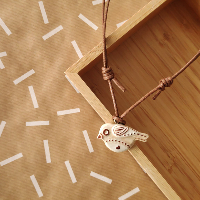 Bird Totem Tribal Necklace - Air-Dry Clay Pendant Jewelry - Unisex Charm;