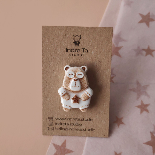Handmade Shiny Bear Pin