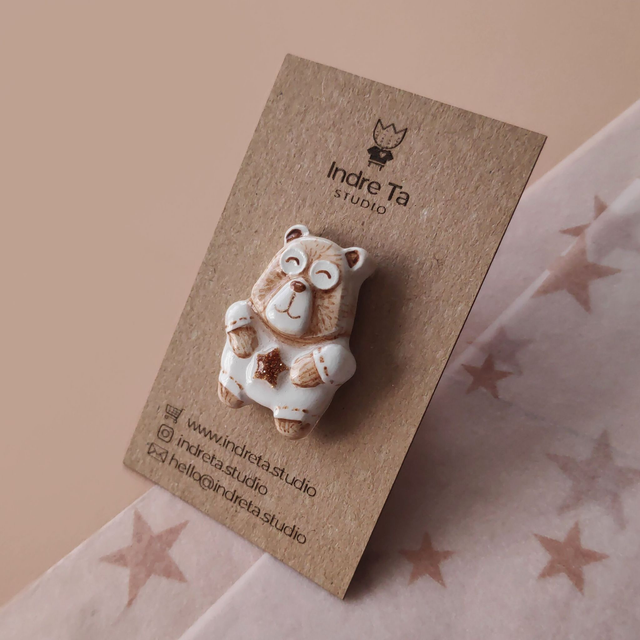 Brown Bear clay pin | Grizzly pottery brooch | Air dry clay brooch | Bear lover gift