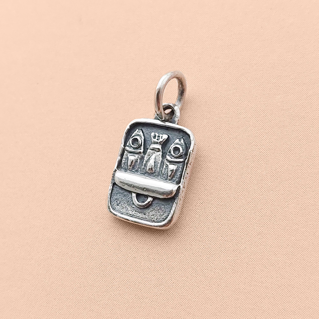Canned Sardines Charm - Mini Fish Pendant - Sterling Silver