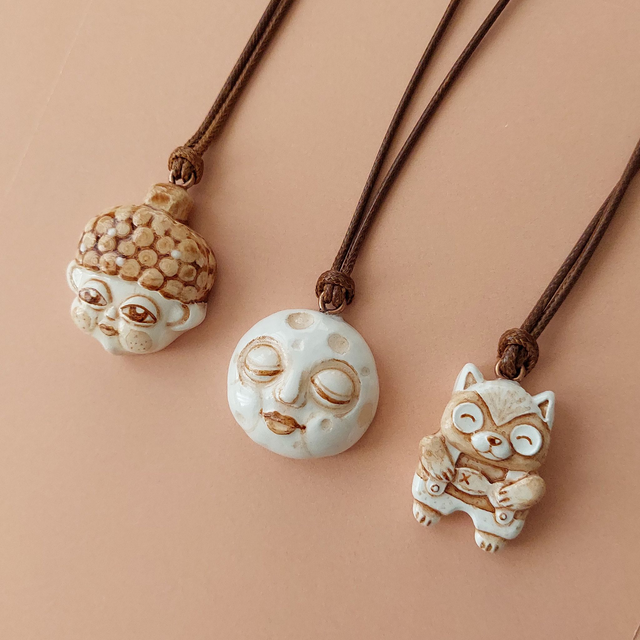 Cat Clay Pendant-Air dry clay charm-Cat fish necklace-Boho style charm-cat lover gift