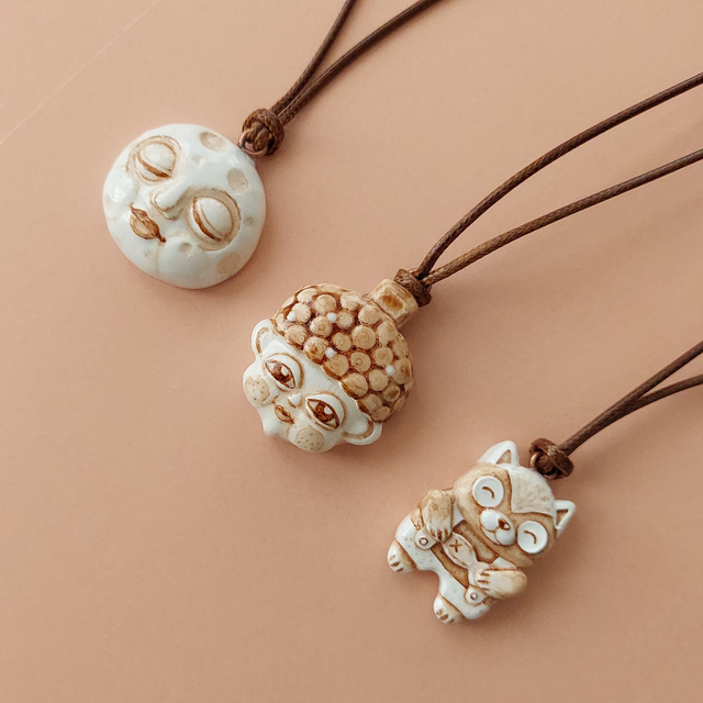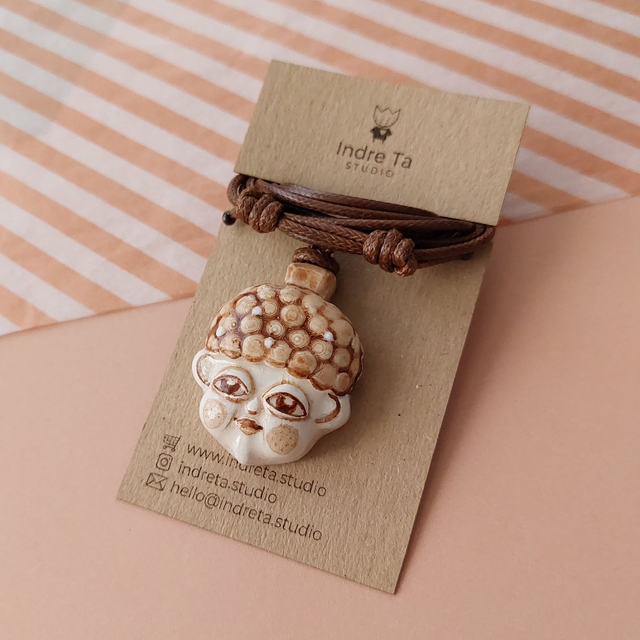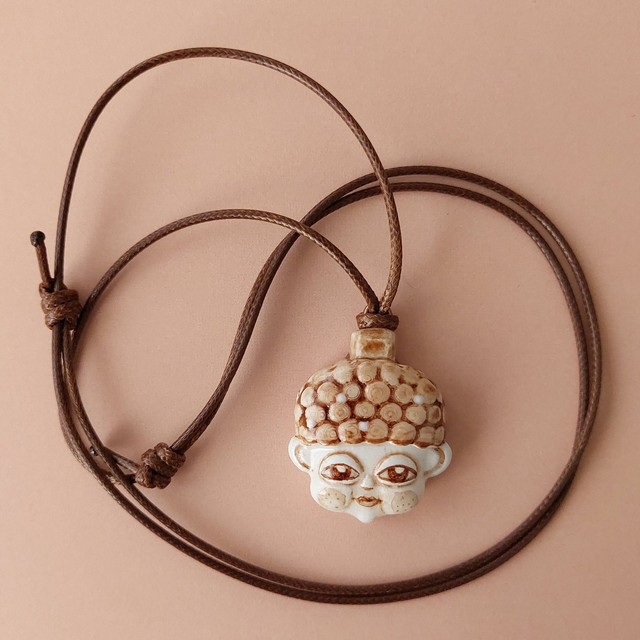 Clay Witch Amulet- Clay Acorn necklace-Doll Face Acorn Air dry clay charm-Celestial forest spirit pendant