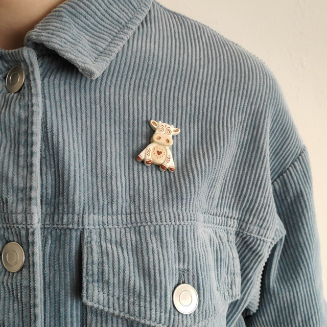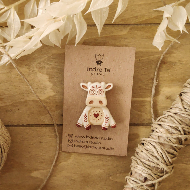 Cow Totem Tribal Pin - Air-Dry Clay Pin - Unisex Pin