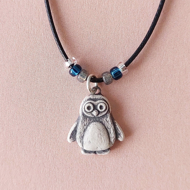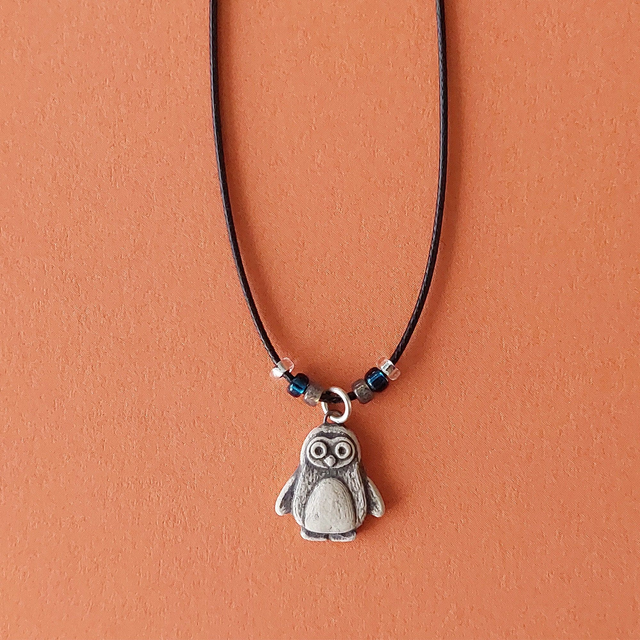 Cute penguin necklace - handmade - penguin charm - ceramic penguin pendant