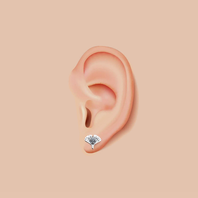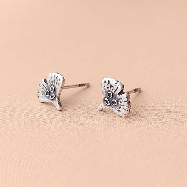 Derpy Ginkgo Leaf Studs - Sterling Silver Ginkgo Earrings - 925 Silver Ginkgo Jewelry