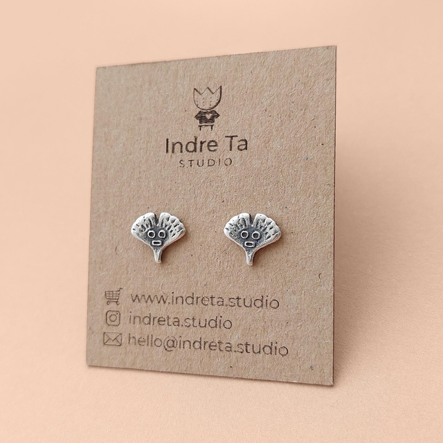 Derpy Ginkgo Leaf Studs - Sterling Silver Ginkgo Earrings