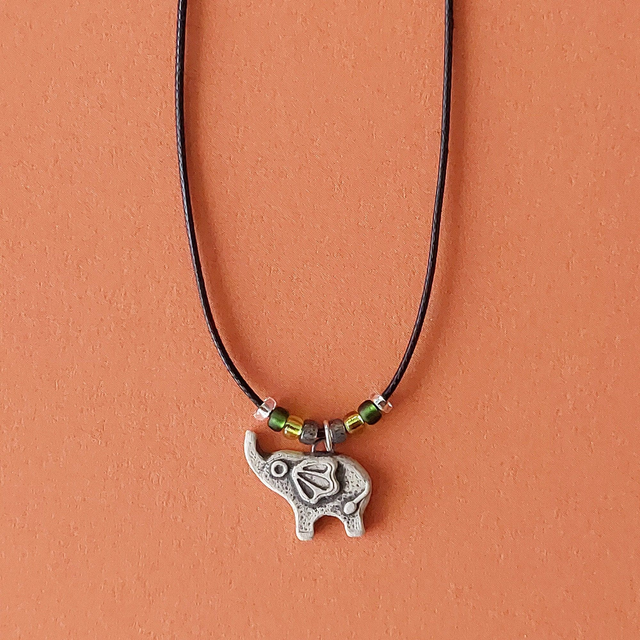 Elephant necklace - handmade - clay elephant charm - elephant pendant