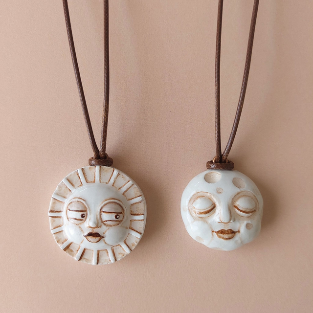 Fun sun necklace - Quirky sunny charm - Clay sun pendant - Air dry clay Charm