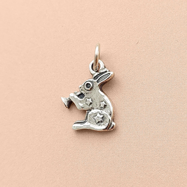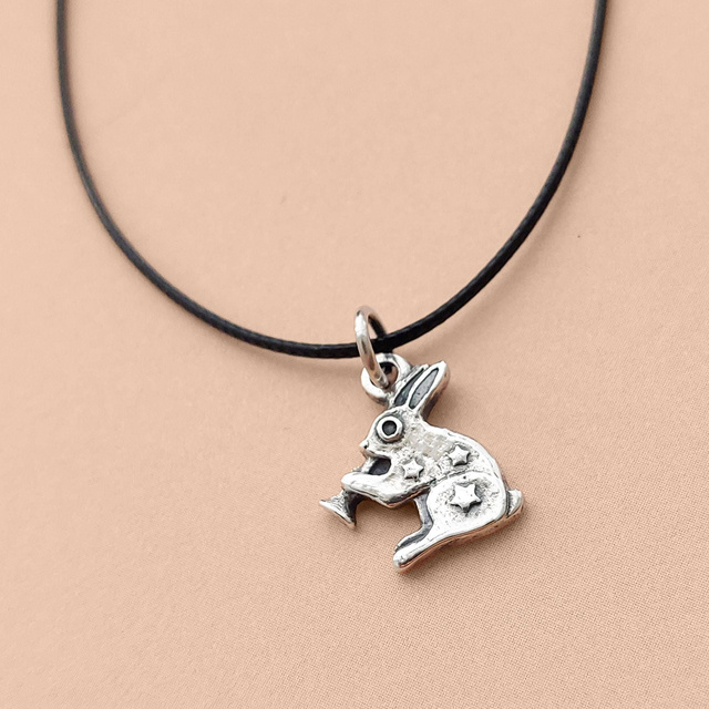Handmade Bunny Necklace - Sterling Silver Hare Charm - Funny Rabbit Pendant - Medieval charm - Bunny with trumpet