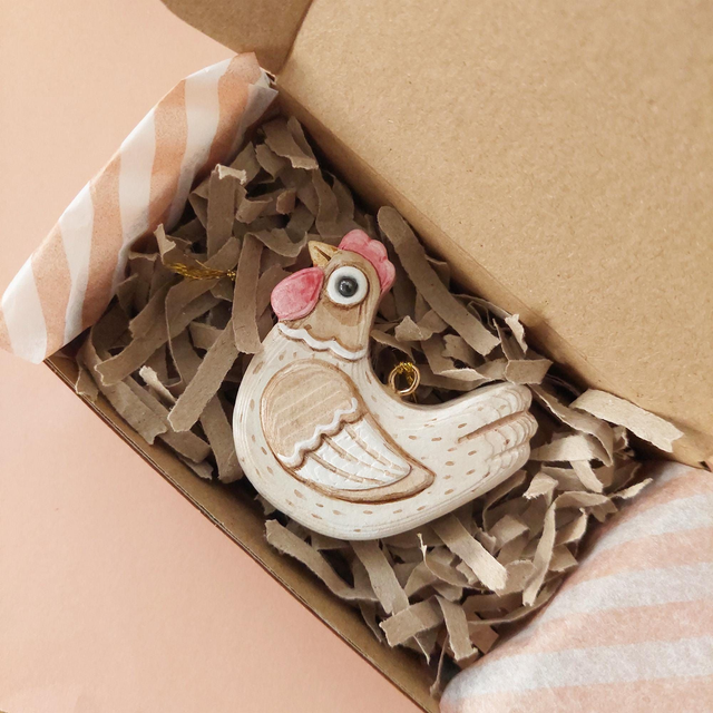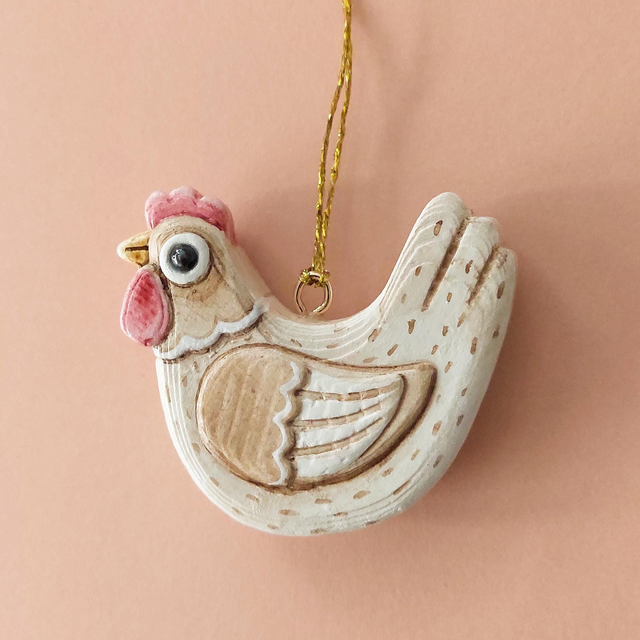 Handmade chicken ornament - air dry clay decoration - clay chicken - hen - christmas bauble
