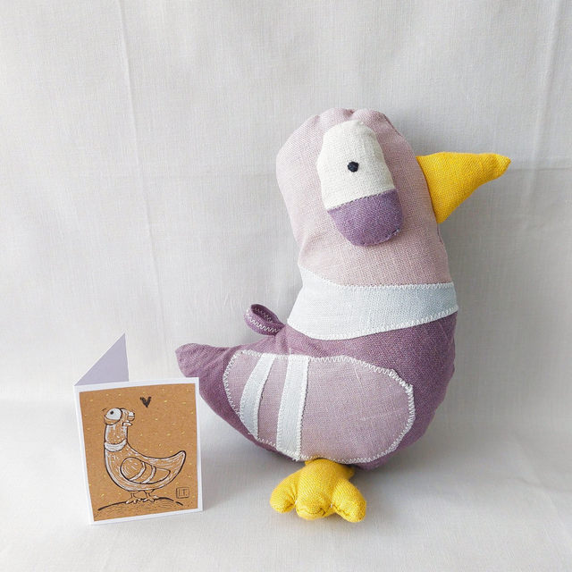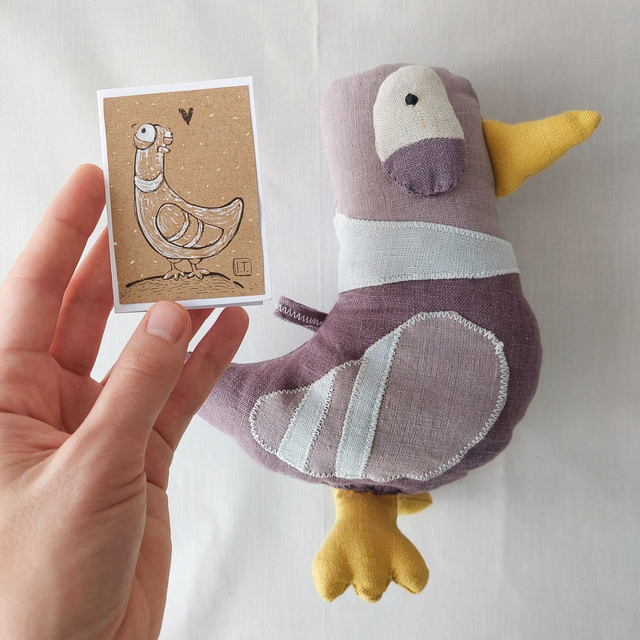 Handmade linen pigeon toy Glen - Premium Linen Heirloom Stuffed Animal