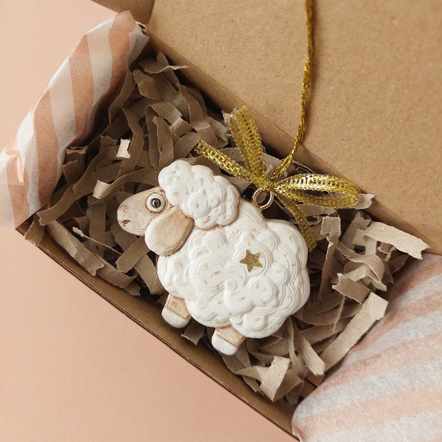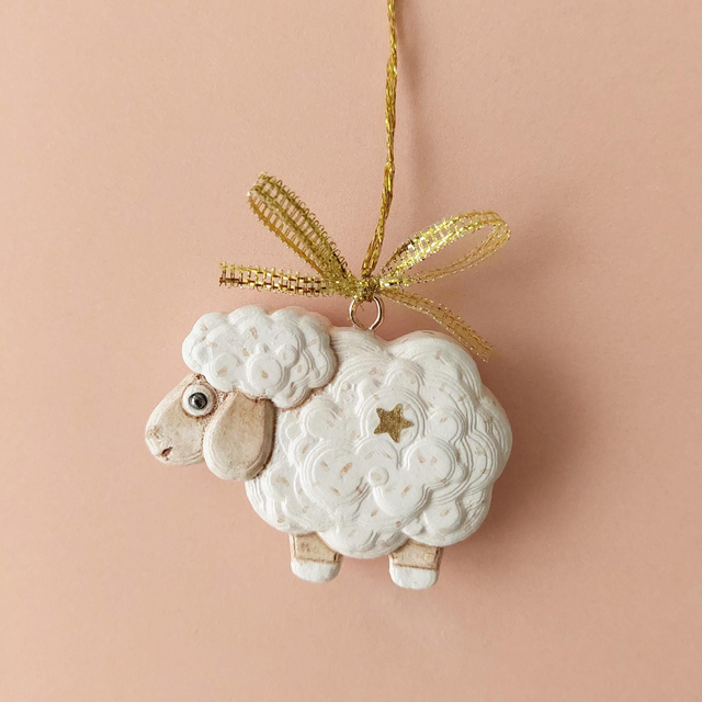 Handmade sheep ornament - air dry clay decoration - clay sheep christmas bauble