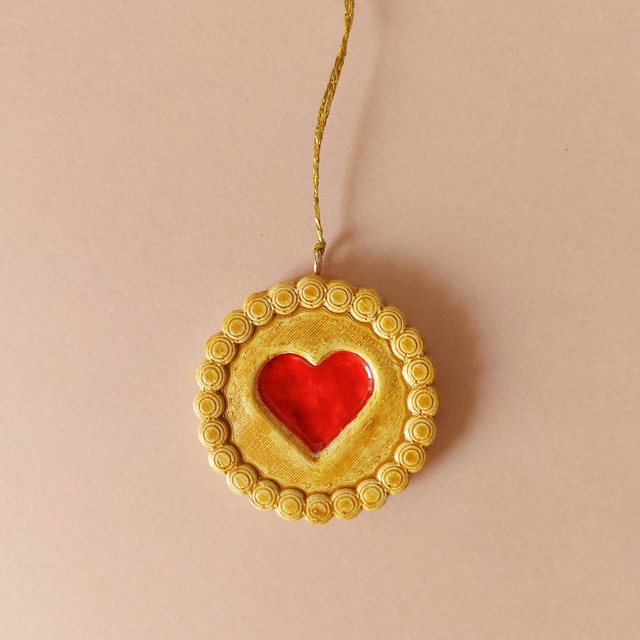 Jam cookie ornament - Danish gift - air dry clay decoration - jam heart biscuits - sugar cookie decor