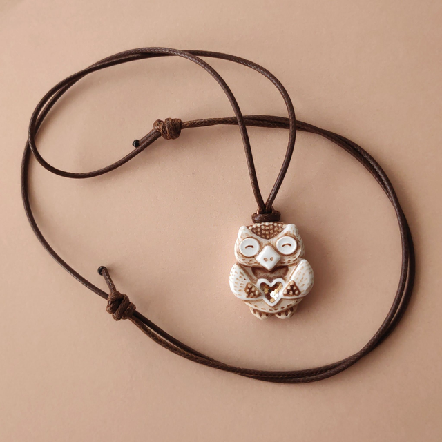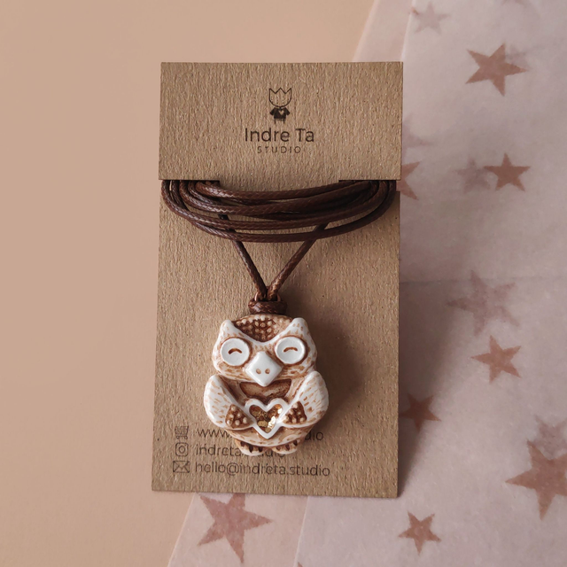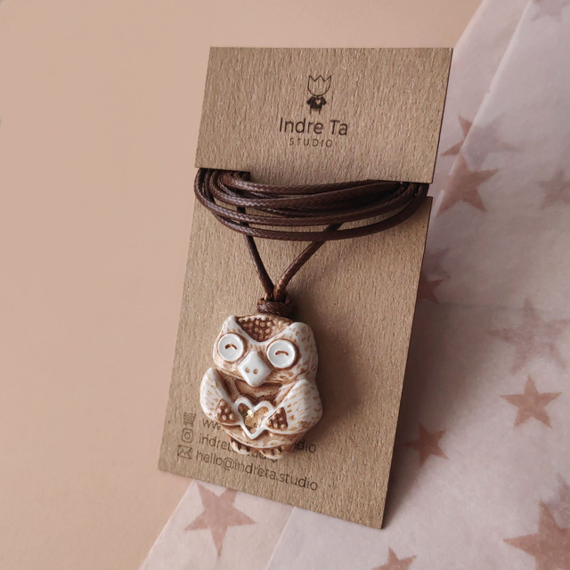 Owl clay pendant - Barn owl necklace - Owl totem - Air dry clay pendant