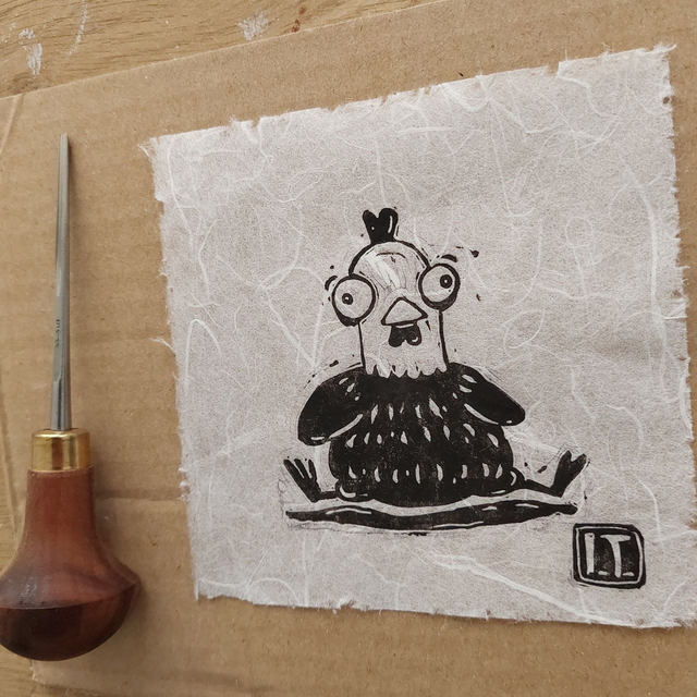 Handprinted quirky chicken - "Bawk Bawk" 2024