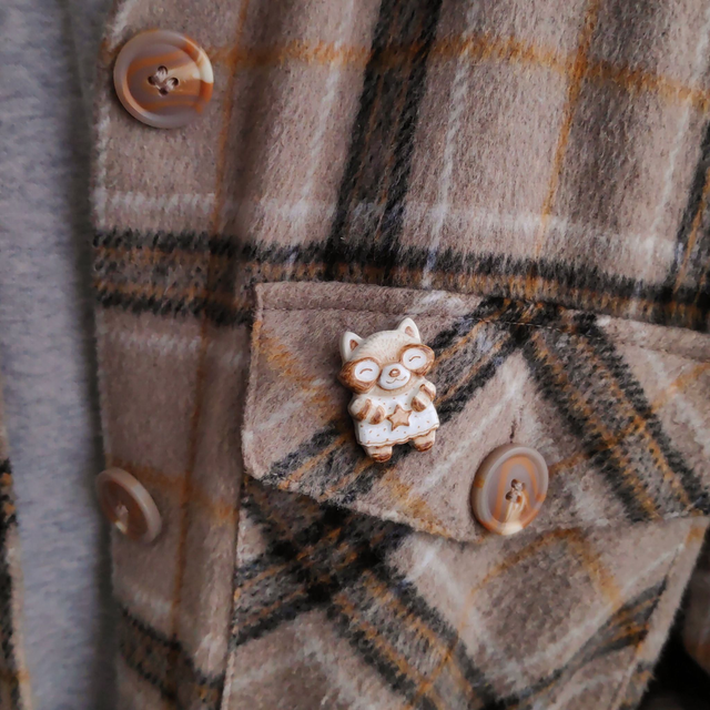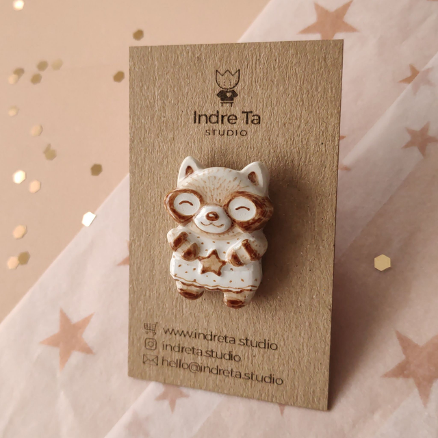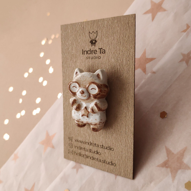 Raccoon clay pin - Red panda pin - Air dry clay brooch