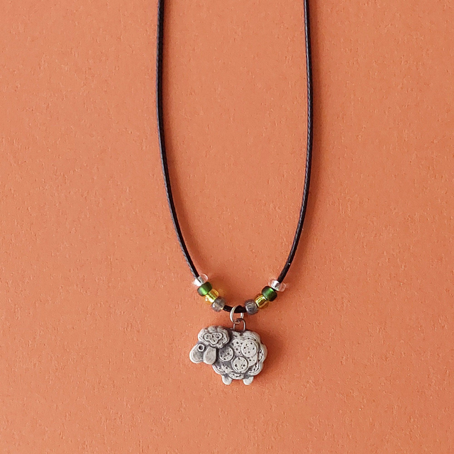 Sheep necklace - handmade - clay sheep charm - rustic sheep bead