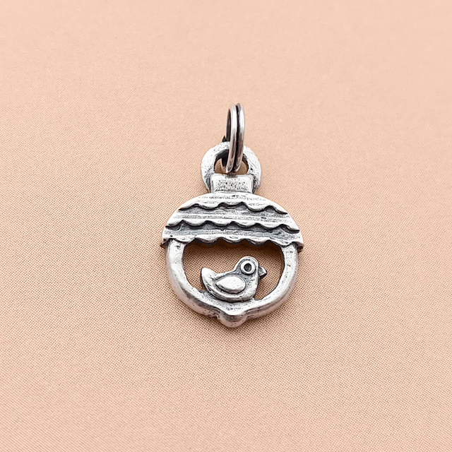 Silver Acorn Necklace - Tiny Bird Charm - Sterling Silver Pendant - Birdhouse Necklace