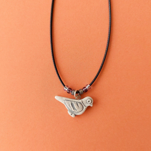 Small ceramic pigeon charm - glass and ceramic necklace - rustic pigeon