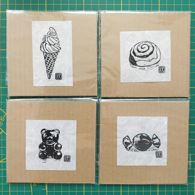 Small Cinnabon Linocut Print - Handprinted Cinnamon Roll Illustration