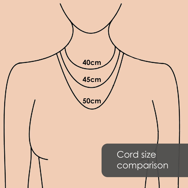 • Can be ordered with a cord or silver chain. Cord has attachments made of sterling silver. If custom lenght is needed, please let us know!