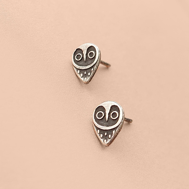Sterling Silver Owl Earrings - Minimalist Owl Studs - 925 Silver Bird Earrings - Handmade Silver Earrings
