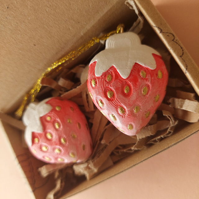 Handmade strawberry decoration for your autumn/easter/Christmas tree. Set of 2 items (available to be purchased as a single one as well). A funny and cheeky gift for your beloved ones. Ornaments come in a nice box, laid on silk paper. Each ornament is lightweight, weighing about 18g.