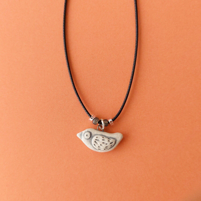Tiny ceramic bird charm - detailed bird pendant - rustic clay bird