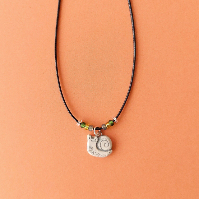 Tiny snail ceramic charm - handmade - unisex slug pendant - rustic clay snail bead