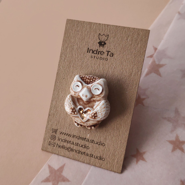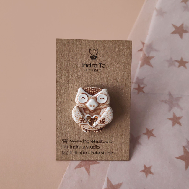 Valentines day gift - Owl clay pin - Barn owl minimalistic pin - Boho style pin - Shiny, festive pin - Air dry clay brooch